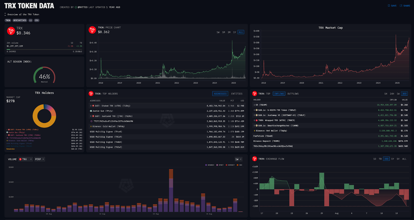 Available units include those to display address, token, and general intel as well as centralized exchange data: