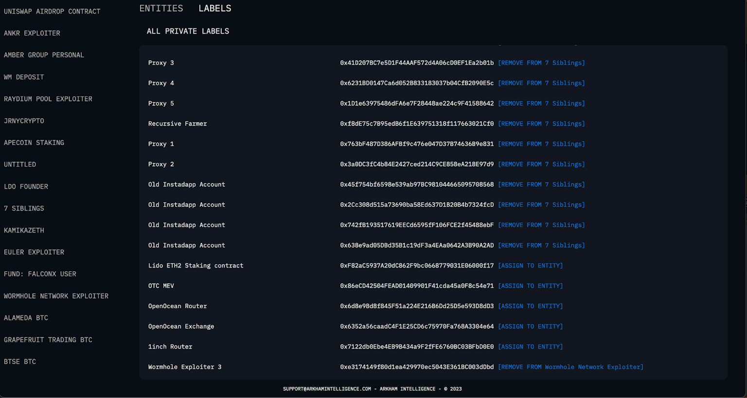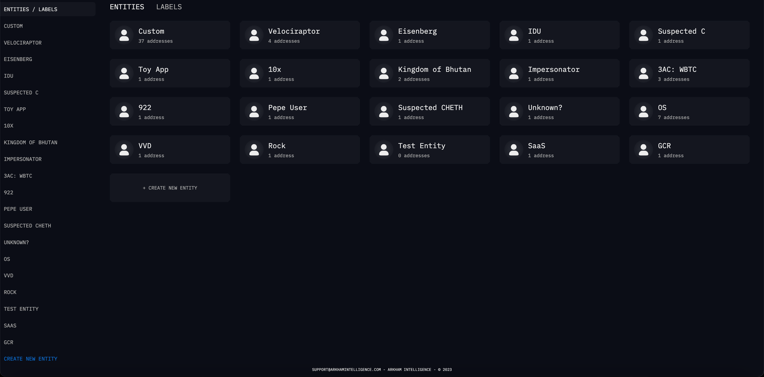 Arkham allows users to add custom labels and entity grouping to any on-chain address.